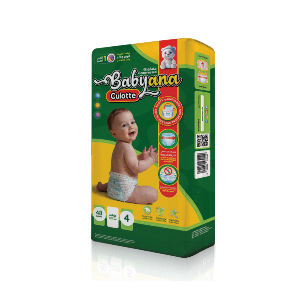 حفاظات “بيبي آنا” تُلبي احتياجات الأطفال الخاصة من جهة، وراحة الأمهات من جهة أخرى. تضمن تقنياتنا المتطورة منع التسرب والحفاظ على الجفاف والراحةً التامة للطفل، مما يُقلل الحاجة إلى تغيير الحفاظات باستمرار، ويحافظ على بشرة الطفل ناعمة وصحية وخالية من الطفح الجلدي.